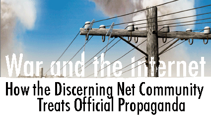 correspondents. They only submit to the propaganda bias in their own head and deliver a totally different picture from the other side of the (media) front. Blogging sketches a world of individuals, of life and death and suffering and desire, just as embedded reporting depicts a world of military objectives and campaigns, victory and defeat. If the two could somehow carry equal weight, perhaps their opposite biases might cancel each other out, or at the very least provide for a greater balance in news coverage. The blogosphere emerges as a kind of "reality Web" with a growing readership. It can be considered the equivalent of reality TV -- just without its disfiguring factors like the fundamental staging of everything shown and overblown show effects. While reality TV simulates reality only and tries to become even more real than reality, reality Web lives from voices that deliver a personal point of view. It describes the ugly sides of events, too, the dead of war, the intrusion of emerging conflicts in daily life and therefore in a setting which is easy comprehensible to readers. But as it is now, embedded reporting and reality TV is plainly the order of the day. Summary Weblogs and mailing lists have become a fixed part of the daily media "consum" of information-hungry surfers. The spectrum of voices and acteurs who sometimes deliver firsthand accounts or function as a personal news filter has increased significantly. People who dive into this infosphere will have a hard time believing in official propaganda. They get somewhat immune to the blunder and blabla from politicians and military leader -- as well as to the many conspiracy theories spread over the Net. On the other hand, there is no manifest or compact public of dissent to be recognized online with a few mouse clicks. We are still talking about a well-educated and media literate elite here, but it seems to be growing. Constraints: